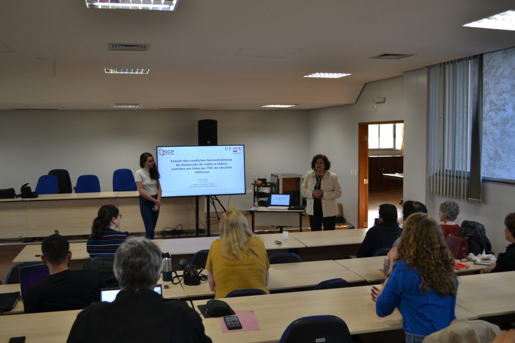Catharina Alvarenga Perdigão apresentou um estudo detalhado das condições termodinâmicas de dissolução de nióbio e titânio contidos em baterias TNO de veículos elétricos, oferecendo contribuições valiosos para a otimização de tecnologias sustentáveis no setor automotivo.