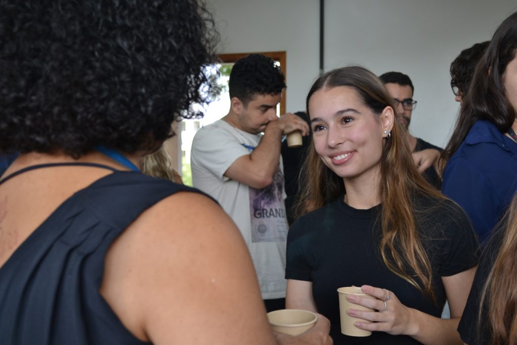 Os alunos foram recepcionados em uma roda de conversa por alguns dos professores que lecionam no programa, incluindo Ana Liddy Cenni de Castro Magalhães, Carmela Maria Polito Braga (coordenadora do programa), Fernando do Couto Rosa Almeida, Giovanna Monique Alelvan, Renan Kozan, Sonia Denise Ferreira Rocha e Talita Fernanda das Graças Silva. Nesse ambiente descontraído, os ingressantes tiveram a oportunidade de compartilhar suas expectativas em relação ao programa e ouvir um pouco das experiências dos anos anteriores, tanto por parte dos professores quanto dos veteranos presentes.